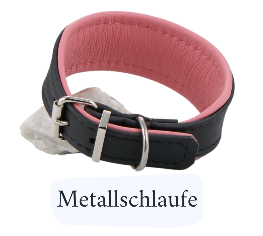 You can order your collar also with a loop made of metal instead of leather. This is a good variant especially for very small necks (25 cm and less), but possible for all neck sizes.